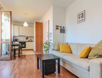 Gli ambienti, impreziositi da un raffinato parquet che avvolge ogni stanza con il suo calore, accolgono con un’atmosfera intima e contemporanea: un luminoso soggiorno con cucina a vista invita a condividere momenti speciali, mentre la camera da letto regala quiete e riservatezza. Completa la proprietà un bagno curato nei dettagli, un balcone ideale per concedersi una pausa all’aria aperta e una comoda cantina. Possibilità di box.