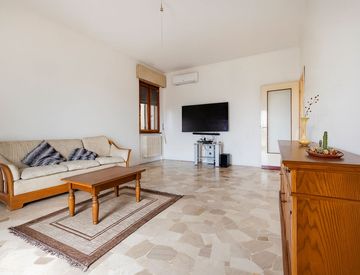 L’ingresso è ampio e introduce in un soggiorno spazioso, perfetto per accogliere una comoda zona relax e un tavolo da pranzo per gli ospiti, con accesso diretto al balcone.