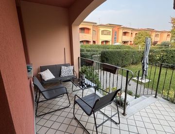 Grazioso e bentenuto trilocale in contesto residenziale posto in tranquilla posizione. L'appartamento e' composto da soggiorno con cottura e uscita in loggia vivibile e giardino. Disbrigo in zona notte, due camere da letto entrambe con uscita su balconi coperti e la matrimoniale con locale guardaroba/spogliatoio annesso, bagno con vasca e finestra. Completano l'offerta una grandissima cantina/lavanderia finestrata e un box singolo ma di dimensioni...
