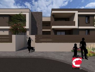In costruendo contesto residenziale, proponiamo appartamento TRILOCALE posto al primo ed ultimo piano, ad alta efficienza energetica (prevista classe A), composta da soggiorno con zona cottura/pranzo e zona living, con affaccio sul loggiato vivibile, due camere da letto (matrimoniale e doppia), bagno finestrato con antibagno attrezzato a lavanderia. Al piano interrato ampia autorimessa di oltre 25 mq.