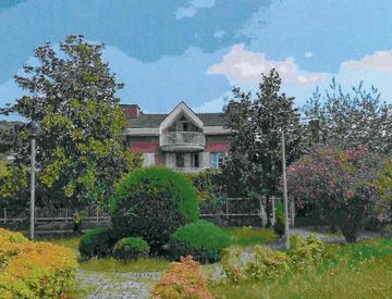 L'edificio presenta finiture di pregio con facciate in mattoni a vista e si inserisce in un contesto residenziale tranquillo e ben curato, caratterizzato da ampie aree a verde circostanti.