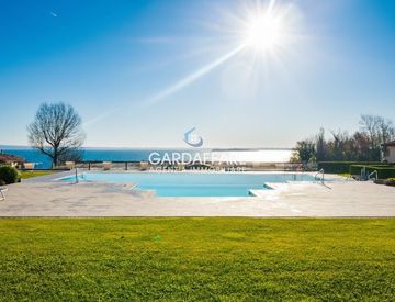 MANERBA DEL GARDA All'interno di bellissimo ed esclusivo residence con meravigliosa piscina vista lago, ampi spazi verdi, zona barbecue, sala Hobby, APPARTAMENTO TRILOCALE D'ANGOLO AL PIANO TERRA CON BELLISSIMO PORTICO VISTA LAGO, luminoso soggiorno con angolo cottura, camera matrimoniale, bagno e camaera doppia. Completano la proprietà un posto auto coperto e un box. RICHIESTA € 445.000. GARDAFFARE 0365/551096. Rif. 25-77.