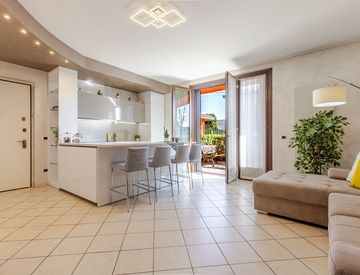 L’appartamento si sviluppa interamente su un unico livello, offrendo una distribuzione degli ambienti pratica e funzionale. L’ingresso conduce alla zona giorno, luminosa e accogliente, valorizzata da un’esposizione che garantisce luce naturale durante tutto l’arco della giornata e da finiture moderne come la pavimentazione in gres porcellanato e gli infissi in legno con doppi vetri.