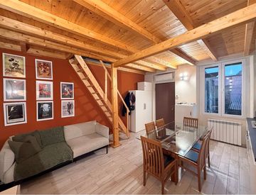 Proponiamo in esclusiva appartamento composto da due locali oltre al solaio mansardato rifinito ubicato in zona centrale del paese; contesto di corte ristrutturata con posto auto privato; immobile in perfette condizioni.