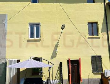 porzione di fabbricato con locale adibito a magazzino/cantina e due terreni in corpi staccati. l'immobile, a cui si accede direttamente dalla pubblica via e dal cortile comune, è distribuito su tre piani, collegati da scala interna, ed è composto da soggiorno, cucina, bagno e ripostigli al piano terra; da camere e ripostigli al primo piano; da due ripostigli in soffitta al secondo piano. superficie commerciale di 163,10 mq. piena proprietà.