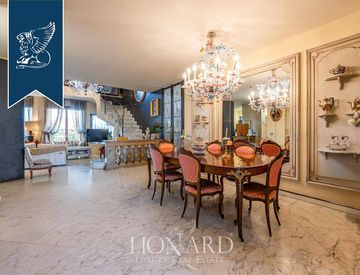 Questa magnifica penthouse di 450 mq, distribuita su tre livelli (sesto, settimo e ottavo piano), è stata progettata dall'architetto P. Denise Viviani e si distingue per le terrazze panoramiche e un rooftop di 150 mq con piscina, da cui si può godere di una vista mozzafiato sullo skyline di Milano e su San Siro. Un angolo di paradiso urbano in vendita che combina comfort moderno con eleganza classica, ideale per vivere nel massimo del lusso.