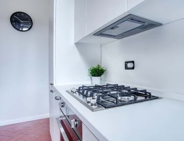 The apartment is completed by a large and comfortable terrace for the exclusive use of the house. The bedroom accommodates two single beds or one double as needed, double closet, overhead storage and shoe cupboards.