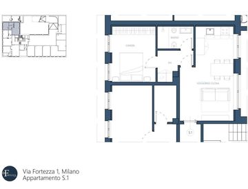 L'appartamento sito al piano seminterrato è stato progettato per ottimizzare ogni spazio, ed è così composto: soggiorno confortevole con cucina a vista moderna e funzionale, un pratico disimpegno conduce al bagno e alla camera da letto. Il tutto è caratterizzato da finiture contemporanee e di design.