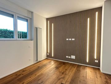 Le finiture interne prevedono pavimentazione in modernissimo parquet in rovere e gress nel bagno completamente arredato e completo di illuminazione, finestrato.