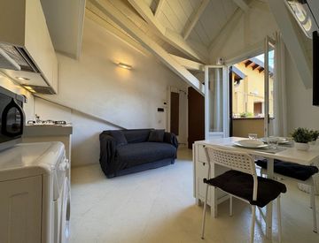 L’immobile si apre su una luminosissima zona giorno con cucina a vista, ideale per accogliere amici. La camera da letto spaziosa garantisce riposo e privacy, mentre il bagno moderno è progettato per il massimo della funzionalità.