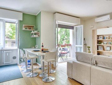 Meraviglioso bilocale di 65 mq composto da ingresso su soggiorno con divano letto e cucina a vista su misura, camera da letto matrimoniale, bagno con lavatrice e ripostiglio. Finemente recentemente ristrutturato e completamente arredato con arredo su misura. Un grande balcone rende l’appartamento particolarmente luminoso.