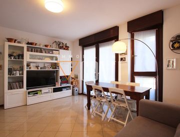 soggiorno, cucina abitabile, due camere da letto, comodo bagno di servizio e secondo bagno finestrato con doccia idromassaggio. Dal soggiorno e da ciascuna camera si accede ad un pratico balcone (per un totale di tre spazi esterni).