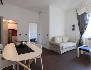 L'appartamento si compone di un ampio soggiorno con comodo divano, che all'occorrenza può diventare divano letto matrimoniale, e cucina separata e polifunzionale; ampio disimpegno con balcone e bagno; una confortevole zona notte con camera da letto matrimoniale e bagno in camera con doccia.