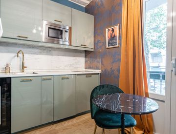 L’appartamento è stato recentemente ristrutturato con stile moderno e materiali di qualità, e si presenta in ottime condizioni interne. È composto da zona giorno/notte con angolo cottura, bagno con doccia e balcone alla francese.