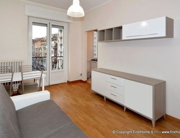 Luminoso bilocale completamente ristrutturato e bene arredato composto da ingresso, soggiorno con balcone e completo di divano-letto per eventuali ospiti, cucinotto dotato di piano cottura a induzione, lavapiatti e altri elettrodomestici, camera con due letti unibili per matrimoniale, bagno finestrato e con box doccia. Pavimenti in parquet, ottimi serramenti, aria condizionata, terzo piano con ascensore, riscaldamento centralizzato. Disponibile dal...