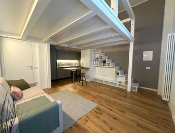 La proprietà è stata completamente rinnovata e viene venduta interamente arredata, rendendola pronta per essere abitata o immediatamente messa a reddito. L’ingresso conduce a un luminoso ambiente open space giorno/notte, valorizzato da un’ampia finestra, divano letto, angolo cottura moderno e completamente attrezzato, bagno con doccia e un pedana arredo che si presta a molteplici utilizzi: studio, area relax o ulteriore spazio per arredi.