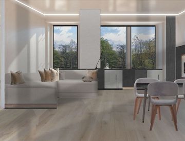 - Gres porcellanato effetto legno, con posa diagonale per tutti gli ambienti ad eccezione del bagno