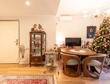 Il prezzo di cartello comprende gli elettrodomestici della cucina, mentre esclude l’arredo, ad eccezione dei seguenti elementi fissi realizzati su misura: armadio a muro nella camera padronale, armadio guardaroba a muro posto a sinistra dell’ingresso principale e scarpiera a muro nel disimpegno.