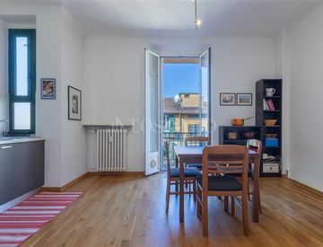 L’appartamento è il frutto dell’unione di due bilocali, offrendo quindi la possibilità di una facile suddivisione per scopi di investimento.