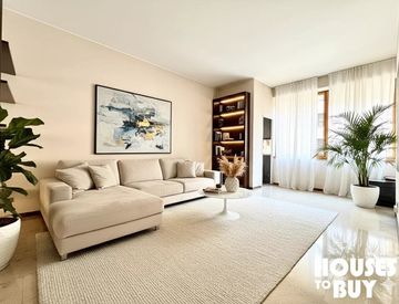 L’ingresso gode di un disimpegno accogliente e spazioso, subito a sinistra la zona giorno con grandi vetrate che lo rendono molto luminoso, annesso un balcone coperto; segue una camera studio, la cucina abitabile e separata con secondo balcone coperto, bagno di servizio. La zona notte invece è composta da due grandi camere di cui una con cabina armadio e il bagno padronale con vasca.
