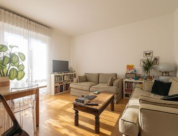 L’appartamento è composto da un soggiorno luminoso e accogliente che si affaccia su un ampio balcone, una cucina abitabile, un’ampia camera matrimoniale, una seconda camera e un bagno finestrato.