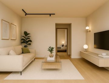 Soluzione composta da ingresso diretto sulla zona giorno con cucina a vista, disimpegno notte con servizio e camera matrimoniale.