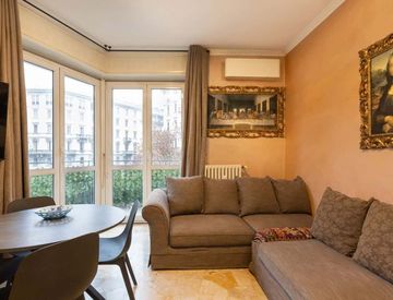 L'appartamento è caratterizzato da ambienti luminosi e ben distribuiti, con una cucina attrezzata e un soggiorno accogliente, dove gli ospiti possono rilassarsi dopo una giornata trascorsa a esplorare la città. Gli arredi sono eleganti e funzionali, creando un'atmosfera calda e invitante.