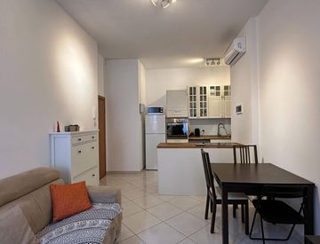 Bilocale di 50 mq, in OTTIMO STATO di conservazione, composto da ingresso diretto su soggiorno con cucina a vista dotata di isola con piano a induzione, una camera matrimoniale di comoda metratura ed bagno cieco dotato di impianto ad aerazione forzata e di box doccia. L'appartamento dispone di impianto di climatizzazione e tapparelle elettriche.