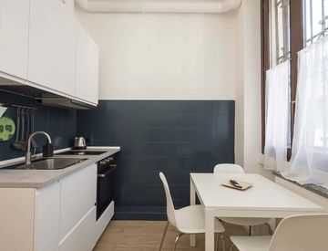 Accogliente monolocale, ubicato in Via Accademia a pochi passi dalle fermate della metropolitana Lambrate con cui è possibile raggiungere il centro città in breve tempo. L'appartamento è composto da un unico ampio locale, dotato di un comodo divano letto singolo + 1 letto matrimoniale soppalcato che lo rende ideale per 3 persone. E' presente una cucina a vista attrezzata e un bagno con box doccia e lavatrice.