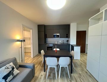 L'appartamento presenta vari confort quali: lavasciugatrice, lavastoviglie, aria condizionata in ogni stanza, ampia smart tv nel soggiorno.