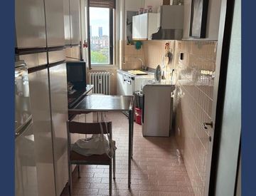 Appartamento ad uso abitazione posto al sesto piano, composto da ingresso/disimpegno, bagno, cucina abitabile, soggiorno e camera matrimoniale. Due balconi. Riscaldamento centralizzato ed acqua calda sanitaria autonoma a gas metano. Dotato di solaio al piano settimo. Dotato di un box sito al primo piano interrato. Libero.