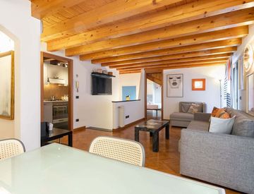 Questo appartamento di circa 75 metri quadrati si caratterizza per essere dotato del sistema di aria condizionata, di doppi vetri e di travi a vista in legno in tutti gli ambienti.