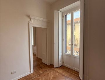 L’appartamento conserva e valorizza tutti gli elementi originali dell’epoca, sapientemente recuperati: lo splendido parquet antico a spina ungherese, recentemente lamato e verniciato, e i soffitti alti 3,30 metri con gessi decorativi, che donano agli ambienti un’eleganza senza tempo. La casa risulta molto luminosa e silenziosa, anche grazie alla qualità costruttiva dello stabile e ai nuovi infissi in legno con doppi vetri.