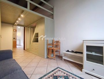 La soluzione è composta da: entrata su zona giorno con cucina a vista completa di tutti gli elettrodomestici (lavastoviglie compresa); bagno con box doccia e lavatrice; zona notte con ampia armadiatura a muro, divano e soppalco.
