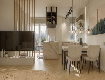 il progetto prevede la suddivisione degli spazi interni (vedi progetto pubblicato) in soggiorno con cucina a vista ed accesso diretto al balcone, camera matrimoniale con cabina armadio, seconda camera da letto, bagno 1 finestrato e bagno 2