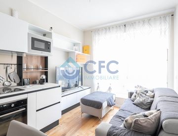 L'immobile è così disposto: ingresso su luminoso soggiorno con cucina a vista e affaccio su via Zuretti, camera, antibagno con cano lavanderia / ripostiglio e servizi con doccia.