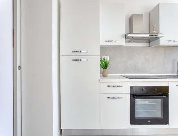 Ingresso su disimpegno, zona giorno con cucina a vista e divano, camera da letto e bagno. La camera da letto ospita un letto matrimoniale e doppia armadiatura ampia e comoda.