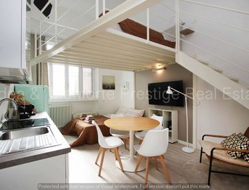 La zona notte è composta da camera matrimoniale soppalcata, mentre il bagno, elegante e funzionale, dispone di un ampio box doccia doppio.