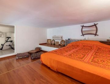 La camera da letto, posta sul soppalco, è molto spaziosa ed è arredata con un letto matrimoniale e un piccolo salottino. La cabina armadio è molto capiente e l'appartamento è provvisto anche di ripostiglio.