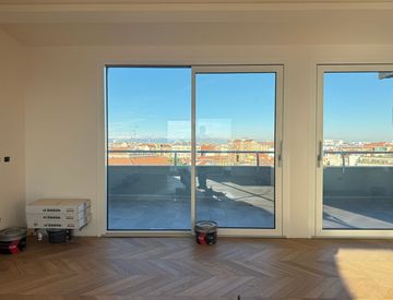 L'attico è cosi composto: zona living con cucina a vista con accesso a terrazzo panoramico, inoltre dispone di tre camere, due bagni e un ripostiglio/lavanderia, completa la proprietà un secondo terrazzo con accesso dalla camera padronale, un ampio balcone a servizio della terza camera. Inoltre possibilità di avere con pagamento a parte un box con prezzo €80.000 e un ampia cantina ad €8.000.