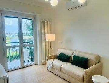 -Arredamento nuovo di zecca: parquet chiaro, aria condizionata, tapparelle elettriche, divano letto Poltronesofà comodissimo