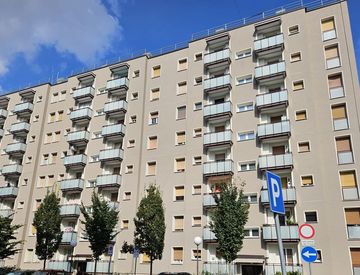 Quarto Oggiaro - Via Filippo de Pisis, tre locali di 82 mq, posto al quinto piano, così composto: ingresso, soggiorno, cucina abitabile, due camere da letto, bagno finestrato, ripostiglio e due balconi. Completano la soluzione il vano cantina e il posto auto condominiale.