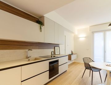 Al primo piano di uno stabile signorile di viale Tunisia si propone un appartamento completamente ristrutturato e arredato con affaccio su Largo Bellintani e la splendida chiesa di San Carlo al Lazzaretto.