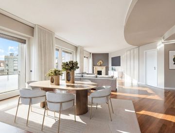 L'appartamento gode di una tripla esposizione, che grazie alle ampie vetrate garantisce una fantastica luminosità in ogni fase della giornata.