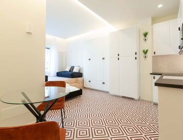 Luminoso ed unico ambiente completo di tutti gli arredi necessari per un migliore comfort, tra la zona notte e la zona giorno, bagno con box doccia, Smart tv, lavatrice, letto scorrevole. Cucina completa, e aria condizionata.
