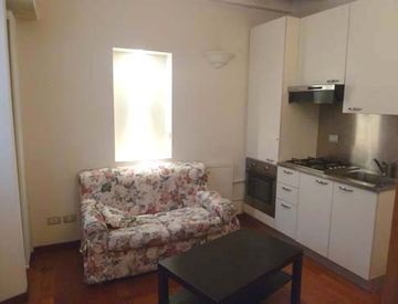 piccolo soggiorno con cucina a vista, camera, bagno
