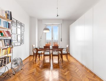In via Cuneo 5, in stabile signorile dotato di servizio di portineria e riscaldamento centralizzato, proponiamo in locazione un affascinante trilocale al settimo ed ultimo piano, caratterizzato da finiture e dettagli d’epoca che conferiscono grande charme all’abitazione.