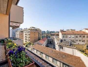 Elegante trilocale di ampia metratura con terrazzo panoramico, situato al quinto ed ultimo piano di un raffinato contesto residenziale del 2010, dotato di ascensore, servizio di portineria full-time e curato giardino condominiale.