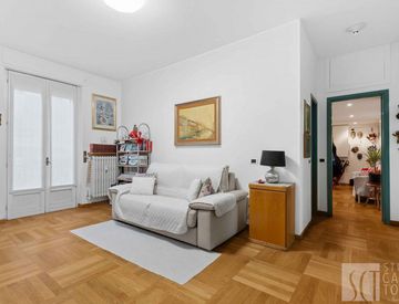 La luminosità dell'appartamento è accentuata dalla sua favorevole esposizione e dal piano alto, offrendo splendide vedute sulla città. La disposizione degli spazi interni è stata pensata per massimizzare comfort e funzionalità.