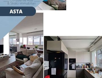 - appartamento con accesso dalla scala A posta al piano quinto e composta all’attualità da tre locali con cucina, due locali bagno e accessori; con sovrastante terrazzo con accessorio collegato da scala interna; con annessa cantina al piano interrato autorimessa al piano interrato.